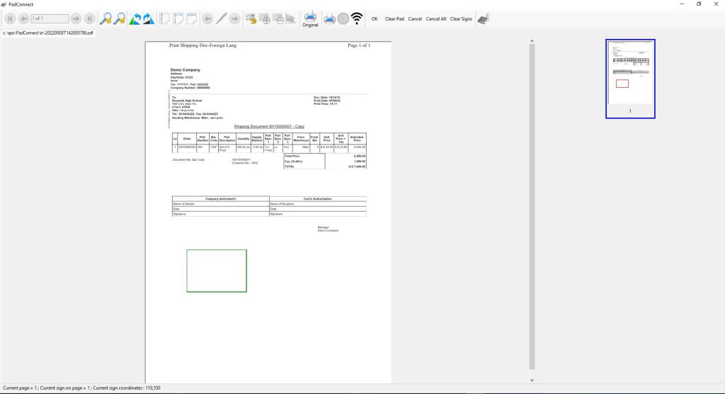 במקום להדפיס מסמכים ולהחתים לקוחות על נייר ולאחר מכן לסרוק אל הERP – תוכל להחתים ישירות על מסמך דיגיטלי שיעבור למסך המתאים בתוכנת הERP. חוסך המון זמן, מקום וכסף. התוכנה באופן אוטומטי מזהה את אזורי החתימה ומאפשרת לחתום בהם באופן דיגיטלי עם משטח החתמה. ולאחר מכן נועלת את המסמך ומטביעה בו חתימה דיגיטלית מאושרת מבחינה משפטית. הפתרון של Pad Connect מתאים לדלפקי מכירה שמספקים סחורה ללקוחות ומחתימים על תעודת משלוח ללא נייר.