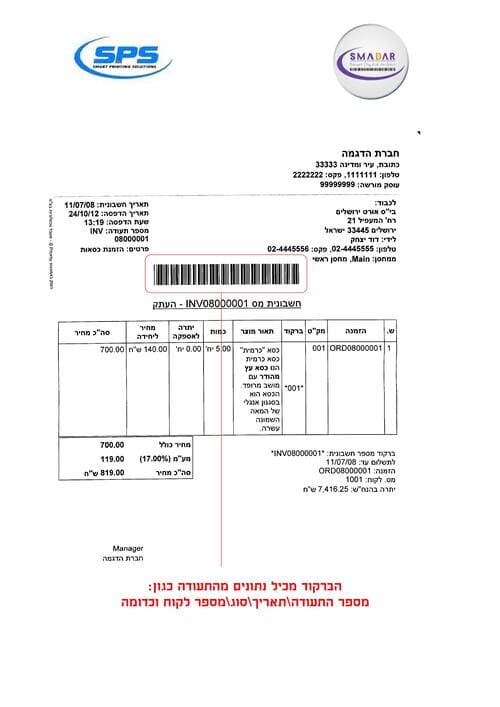 ברקוד ייחודי לכל תעודה (משלוח/חשבונית)